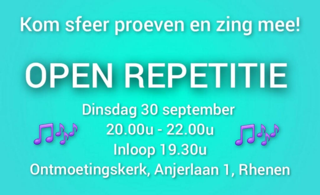 Benieuwd of zingen in Euphonia iets voor u is? Op dinsdag 30 september (20.00 uur) is er in de Ontmoetingskerk in Rhenen een open repetitie, waar iedereen die geïnteresseerd is kan komen proeven van de sfeer en de kwaliteit van ons koor. Vooraf aanmelden is niet nodig!