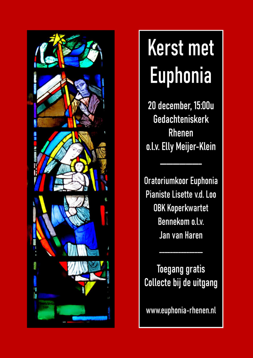 Na het succes van onze uitvoering van ‘The Peacemakers’ op 24 mei 2025, richt Euphonia zich alweer op de toekomst. Op zaterdag 20 december geven wij een middagconcert in de Gedachteniskerk in Rhenen, met vooral muziek in kerstsfeer. Daar zullen onder meer fragmenten uit ‘The Messiah‘ van Händel en het ‘Weihnachtsoratorium’ van Bach klinken.